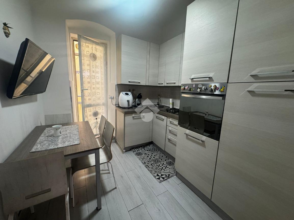 La disposizione dell'immobile, totalmente ristrutturato, è composta da ingresso in soggiorno, cucina abitabile, ripostiglio, bagno dotato di box doccia e due camere da letto.