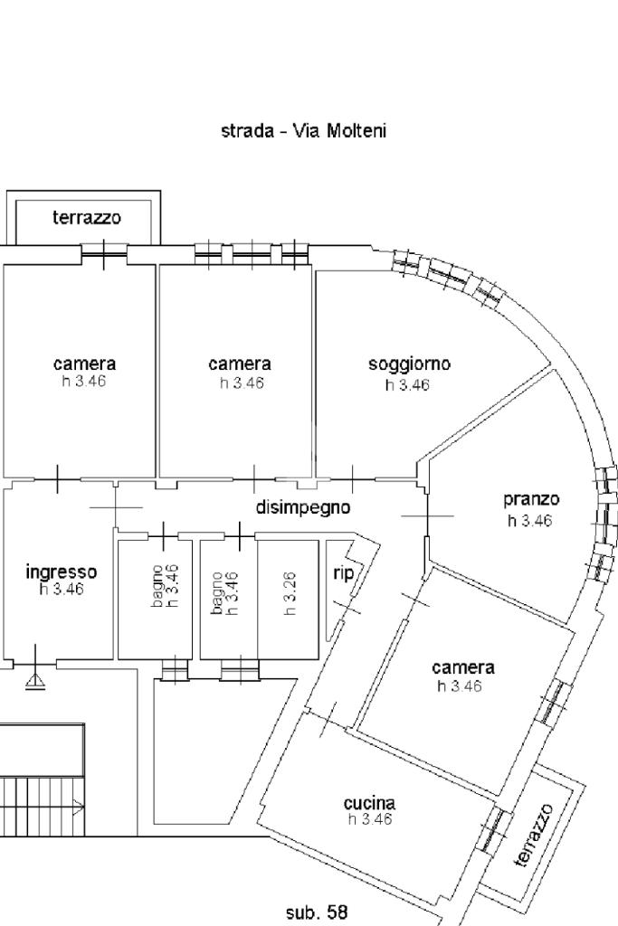 L'alloggio è composto da ampio ingresso, doppio soggiorno, 4 camere da letto, cucina abitabile, due balconi, due bagni e dispensa.